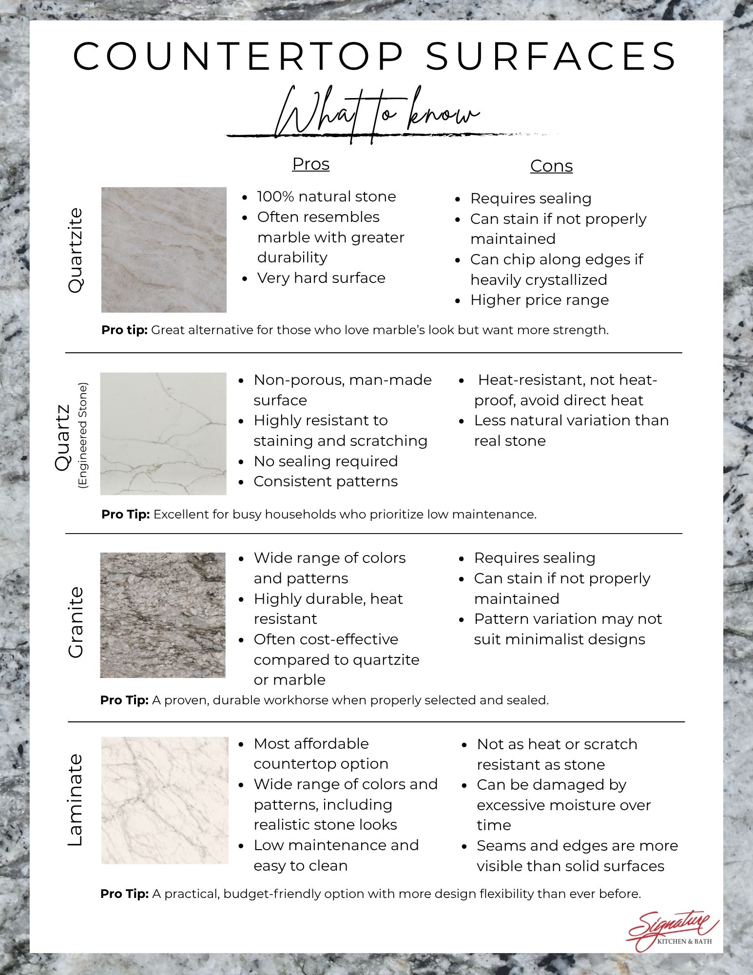 Check out our countertop guide below as a quick reference point!